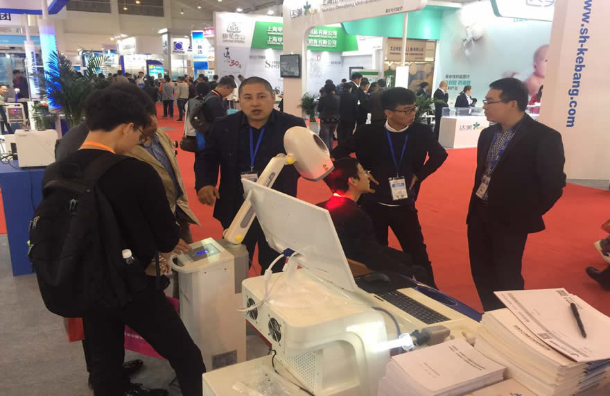 中醫特色康復理療產品---“大力神雀啄灸”依然是此次醫博會公司所有參展產品中最具亮點和吸引眼球的產品之一,產品展位前人頭顫動,眾多國內外醫療同行和經銷商競相了解、咨詢和體驗,工作人員通過專業產品知識的講解和療效體驗以及創新營銷合作方式的介紹,客戶和經銷商們對新品表現出濃厚的興趣,紛紛表示要求引進臨床或共同合作開發該產品市場。